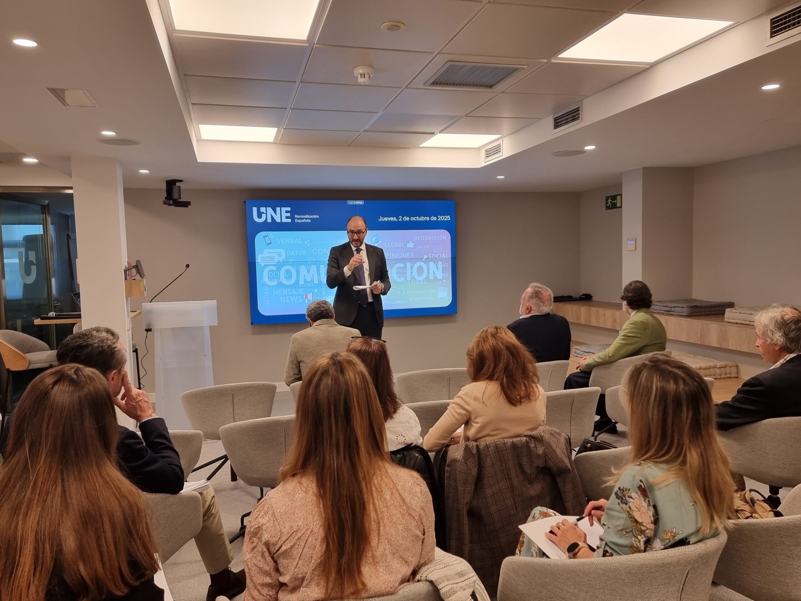 El pasado jueves, 2 de octubre, la Asociación Española de Normalización -UNE- organizó, en su sede de la calle Génova 6 de Madrid, un jornada sobre Comunicación interna en las empresas e integración de la IA, igualmente en las mismas.