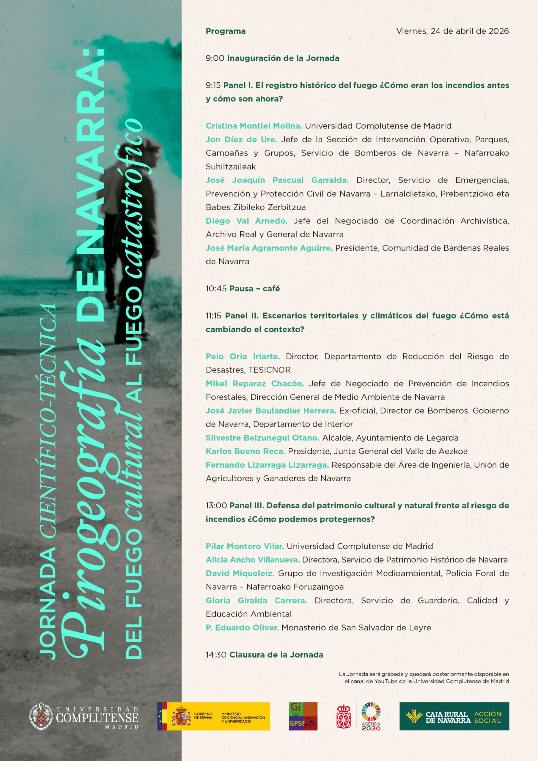 El próximo día 24 de abril se va a celebrar la Jornada Científico-Técnica “Pirogeografía de Navarra: del fuego cultural al fuego catastrófico” en Pamplona.